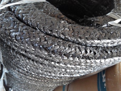 石墨盤根一般采用8、12、16、24、36、48、60等個(gè)錠子在三或四個(gè)軌道上編織而成,斷面呈方形,表面平整,彈性和耐磨性好,強(qiáng)度高,致密性好,與軸接觸面比發(fā)辮式大且均勻,纖維間空隙小,所以密封性好,表面層磨損后整個(gè)填料不會松散,使用壽命長,是一種比較先進(jìn)的編織結(jié)構(gòu)。