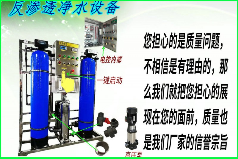 我們的凈水設備不管是質(zhì)量價格都會讓您滿意的,設備出廠后不會有售后,因為我們出廠前已經(jīng)把質(zhì)量做到?jīng)]有售后,我們的設備全是自動控制,水滿自停,缺水就會自動產(chǎn)水,無需人工管理,管件部分高壓是不銹鋼,低壓部分是工業(yè)UPVC管件,不會出現(xiàn)斷裂崩斷等現(xiàn)象。電控全是德力西品牌,低壓保護開關,熱載保護,高低壓沖洗等功能,只要設備出廠我們將會終生維護,只要您信任我們,我們將不會辜負您。