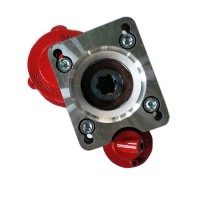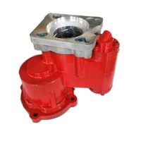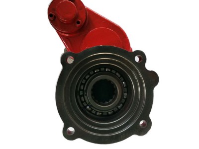 側(cè)取力器系在變速箱側(cè)取力窗口通過變速箱中間軸上的高擋齒或倒擋軸上的倒擋齒取力。在汽車取力器中使用最為廣泛。 總體結(jié)構(gòu):有一軸式、兩軸式、三軸式、帶副箱式、單操縱雙輸出式和雙操縱雙輸出式等幾種形式。其中以兩軸式結(jié)構(gòu)最為普遍;一軸式結(jié)構(gòu)最為簡單;三軸式主要用于輸出有雙速異向用途的取力器,如越野車絞盤取力器;也有原為一軸式或兩軸式后為改變輸出軸旋向而增加一軸新成為兩軸式或三軸式;帶副箱式主要是在原取力器基礎(chǔ)上進(jìn)一步增速或減速,以擴(kuò)展其使用性能;單操縱雙輸出式的兩輸出可同軸也可不同軸,但由同一操縱機(jī)構(gòu)同時控制;雙操縱雙輸出式的兩輸出可同軸也可不同軸,但由不同的操縱機(jī)構(gòu)獨(dú)立控制。